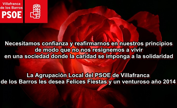 La Agrupación Local del PSOE de Villafranca de los Barros les desea Felices Fiestas y un venturoso año 2014.
